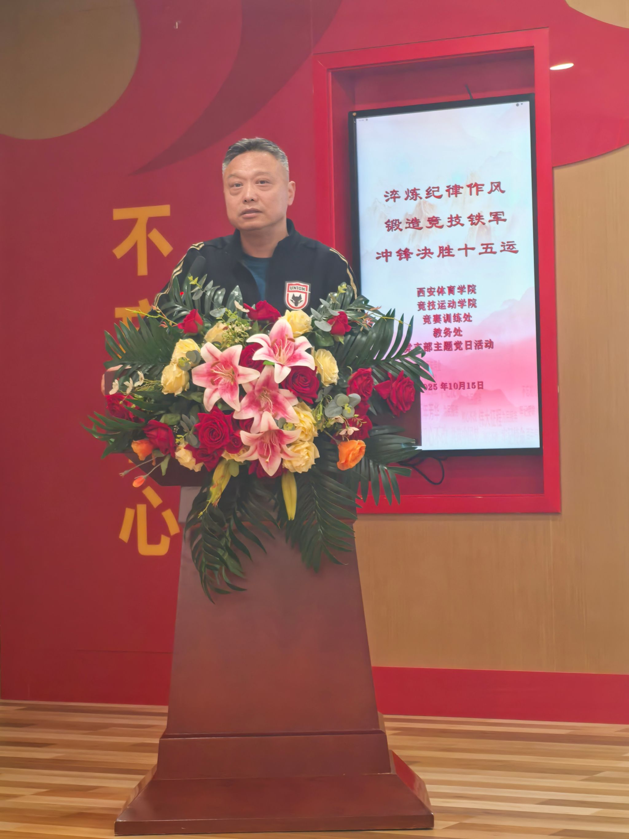 随后,今年会官网党委委员、副校长张葆欣同志为全体党员讲授专题党课《淬炼纪律作风 锻造决战铁军》。党课内容紧扣中央八项规定精神,结合体育系统作风建设实际,深刻阐述了纪律作风在竞技体育备战中的重要意义,号召全体党员以铁的纪律、铁的作风、铁的担当,锻造一支敢打必胜的竞技铁军,为决战十五运提供坚强保障。