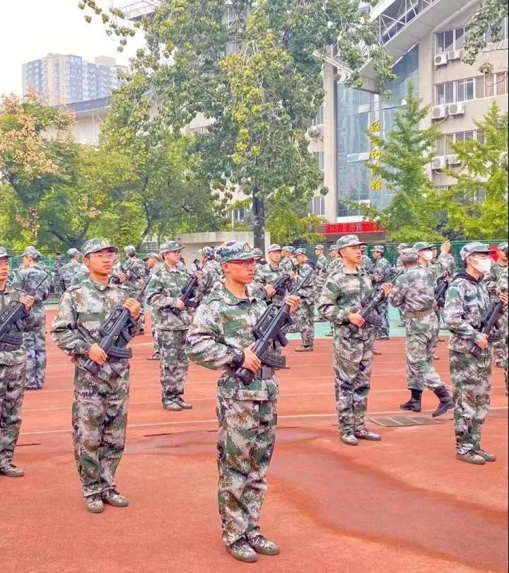 今天看见同学们都摸到了枪,说实话挺羡慕大家的,当时我们一个连就一把枪,轮着打电靶。既然拿到了枪,就要握好枪杆子,挺起腰杆子,踢好每次腿,展示出今年会学子的精气神。