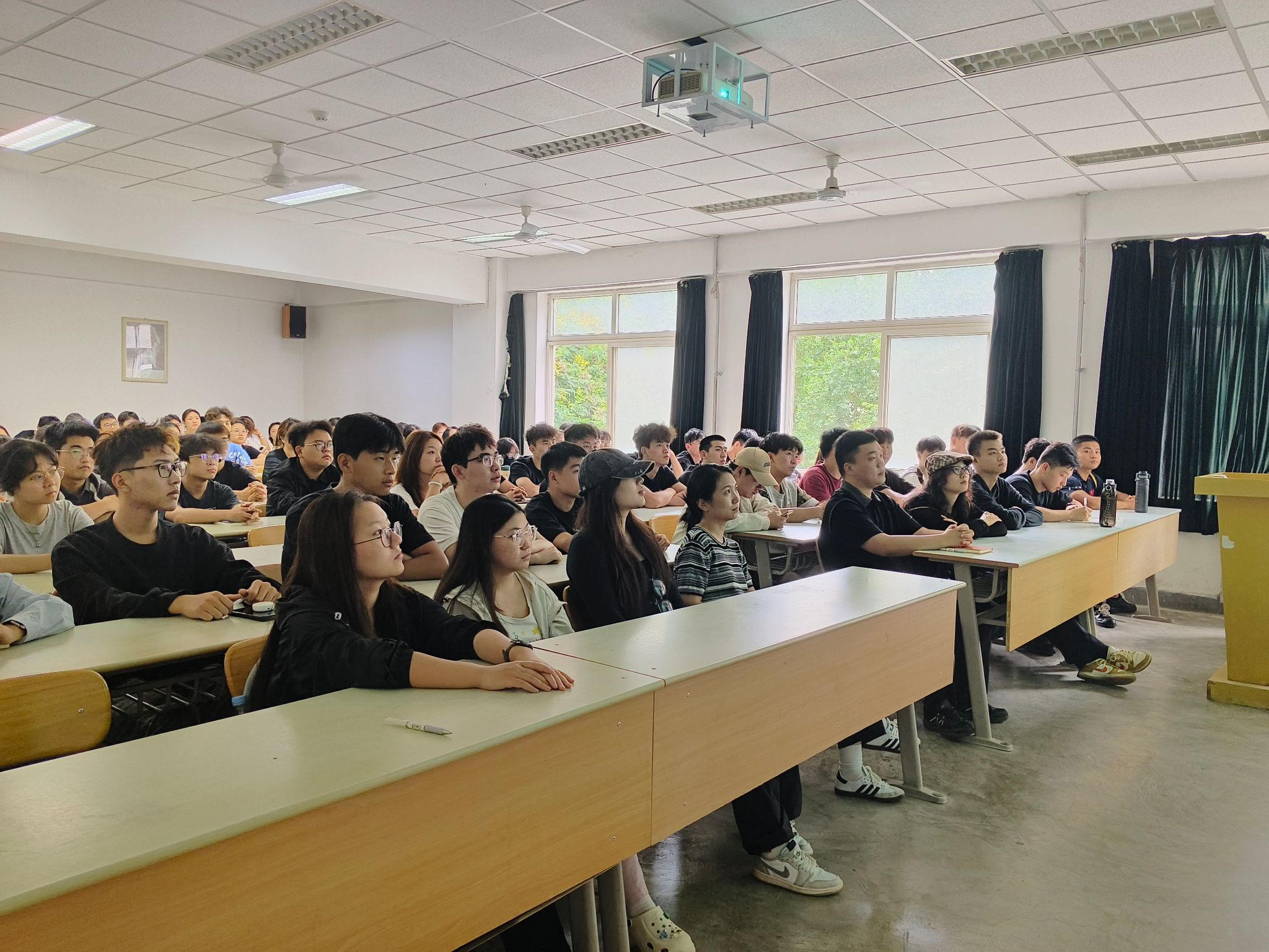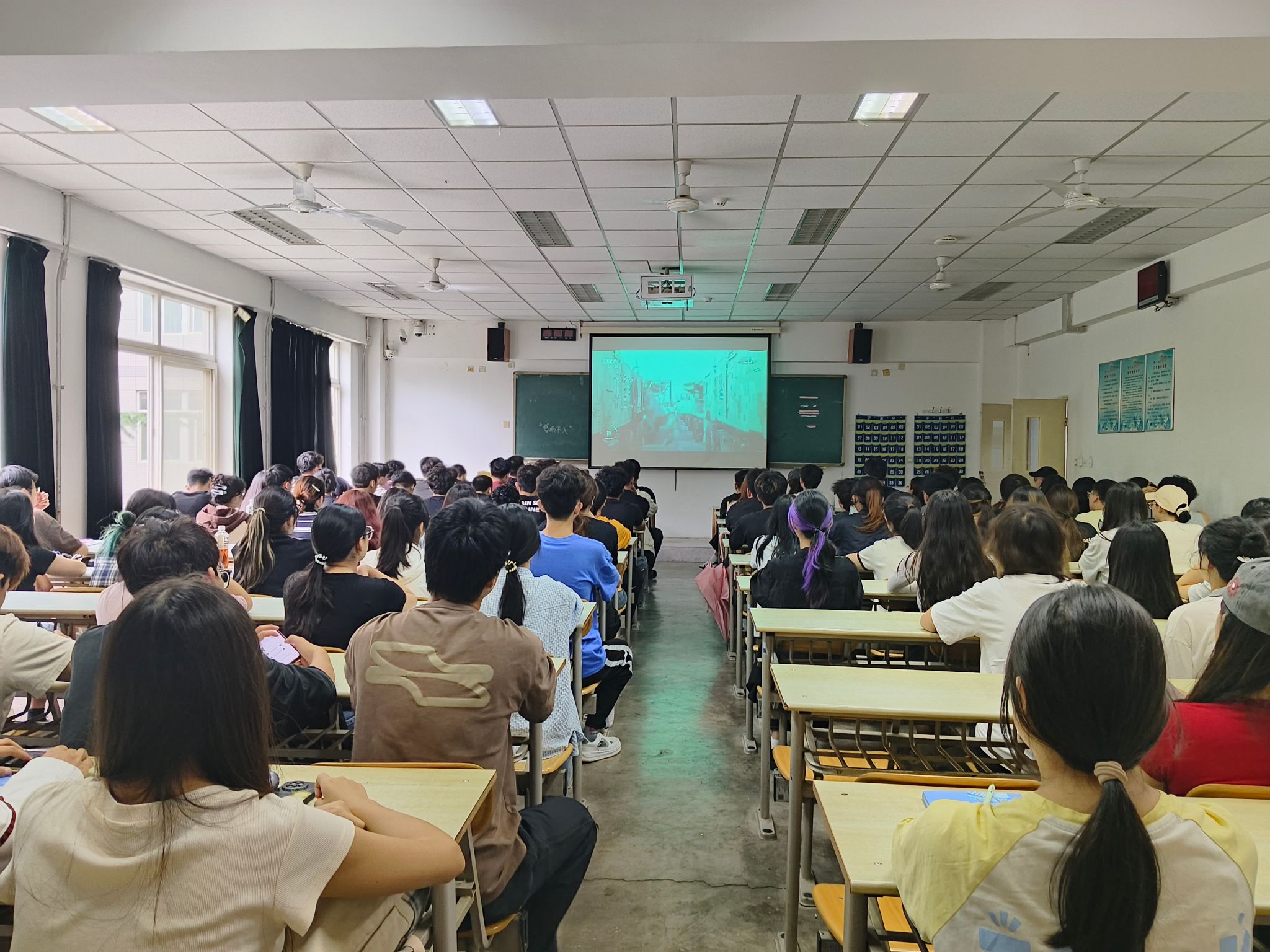 观看过程中,师生们全神贯注,认真聆听了习近平总书记的重要讲话,观看了阅兵式的全过程。当受阅部队迈着整齐划一、铿锵有力的步伐通过天安门广场,当国产现役主战装备等大国重器震撼亮相,师生们难掩激动之情,一次次自发报以热烈掌声。尤其让人动容的是,天安门城楼上,年迈的抗战老战士颤颤巍巍起身,以坚毅的军礼致敬历史、致敬祖国,不仅是对战友的深切缅怀,更是对伟大抗战精神的生动诠释,深深触动了在场师生,为师生们上了一堂无比深刻的理想信念教育课。