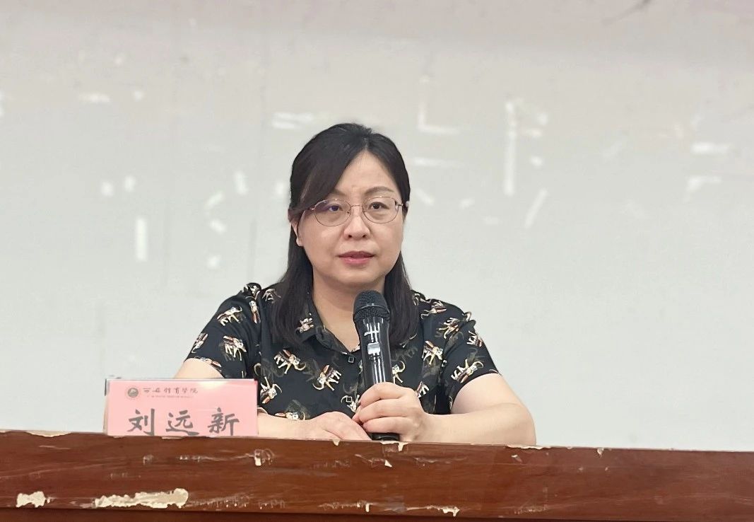 运动与健康科学学院副院长刘远新老师讲话,刘远新副院长介绍了今年实习工作的具体情况,包括成立实习领导小组、实习人数、实习分配地点、实习时间及各专业校内实习指导老师分配等。同时,注意事项中提到要认真研读实习手册等,提出了保持积极、谦虚的学习态度,知晓角色定位,明确自己的身份和职责范围,学会与人沟通和主动学习的具体要求。
