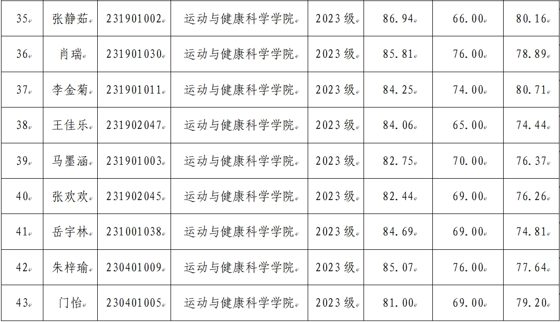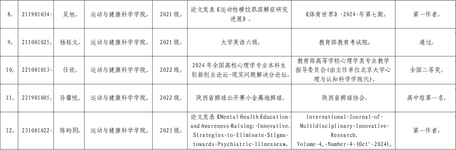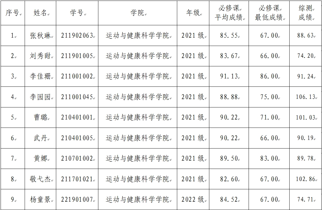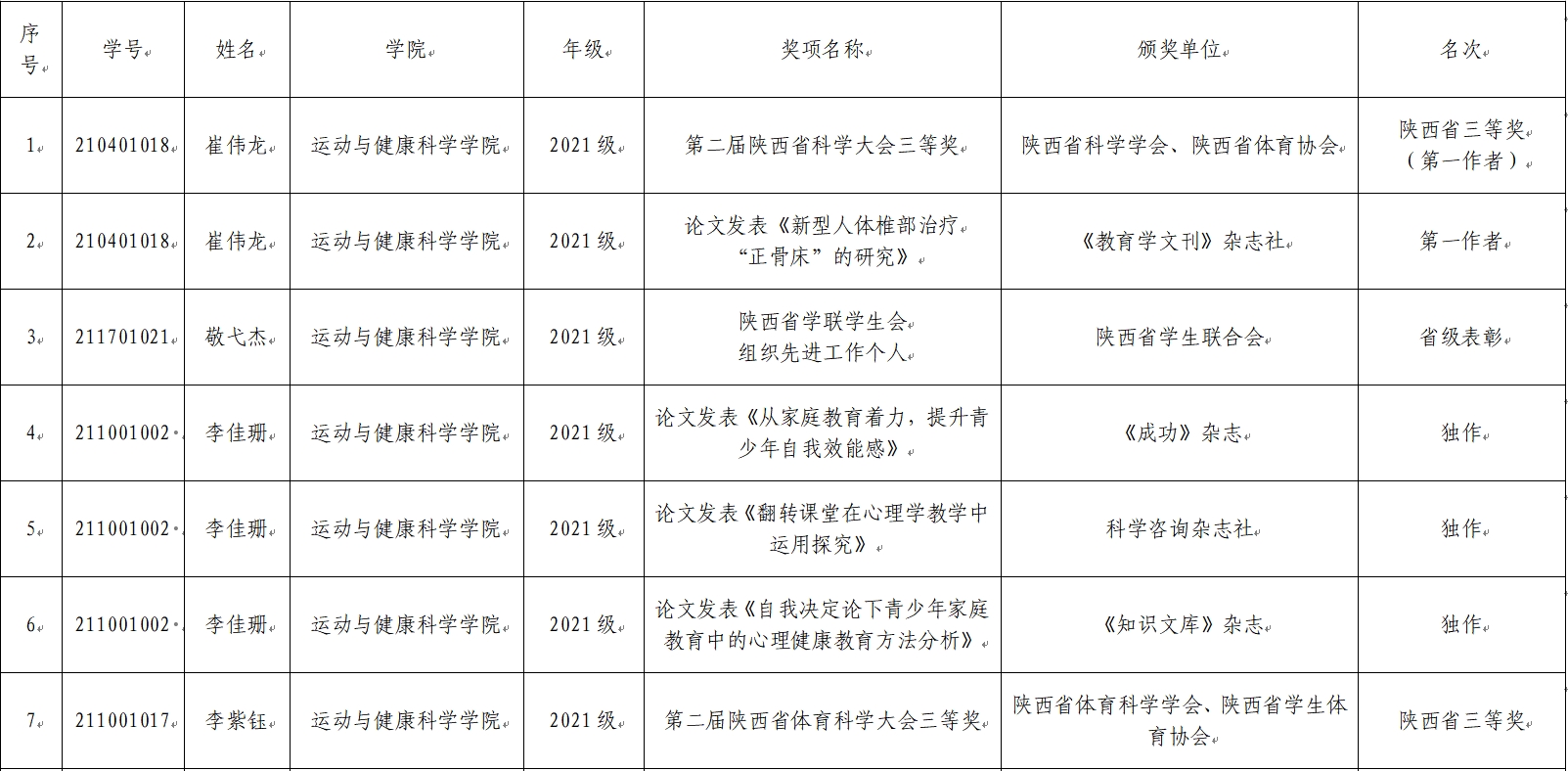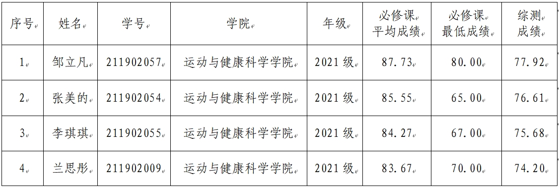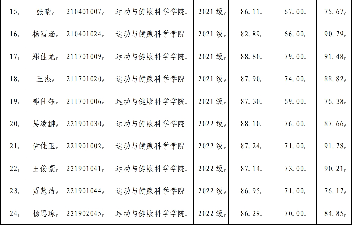 为做好今年会 2023-2024 学年学生评优评先评定工作,我院坚持公正、合理、实事求是的工作原则,严格按照《今年会官网学生奖励实施细则》井结合《今年会官网学生德、智、体综合考评办法》进行评选工作。现将运动与健康科学学院学院2021级、2022级、2023级获得三好学生、优秀学生干部、三好学生标兵、优秀学生干部标兵、单项奖学金、先进班集体情况公示如下: