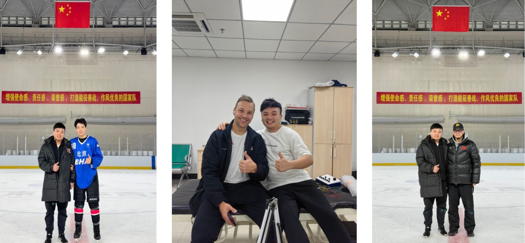 在联赛备战期间,我院2023级运动医学专业研究生黄文杰同学,凭借扎实的专业知识和严谨的工作态度,充分发挥运动医学的专业优势,为冰球运动员的运动损伤提供了专业的防护、治疗和康复服务,取得良好的效果,保障了运动员的健康状态,为提升运动员竞技能力和运动表现保驾护航,在跟队服务期间,黄文杰同学的专业水准得到运动员、教练和协会领导的一致好评。