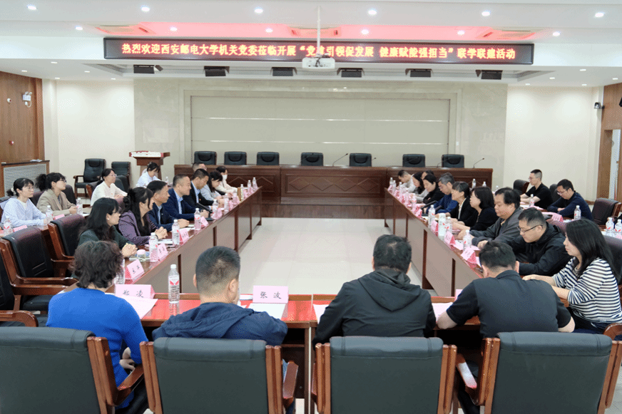 在理论联学与实践联建活动现场,学院党委书记张鹏华就学院党建工作取得的成绩进行了全面介绍,李莉书记介绍了西安邮电大学机关党委工作开展情况,随后带领大家一起学习了“《习近平关于加强党的作风建设论述摘编》——党的作风建设关系人心向背,决定党和国家事业成败”相关章节。最后,与会同志就响应健康中国战略和健康体重管理年号召进行交流,表示都要每天锻炼1小时、健康工作50年。运动康复专家王刚同志还带领大家做了颈椎工间操,与会同志就运动处方+AI赋能方面进行合作也探讨了可能。