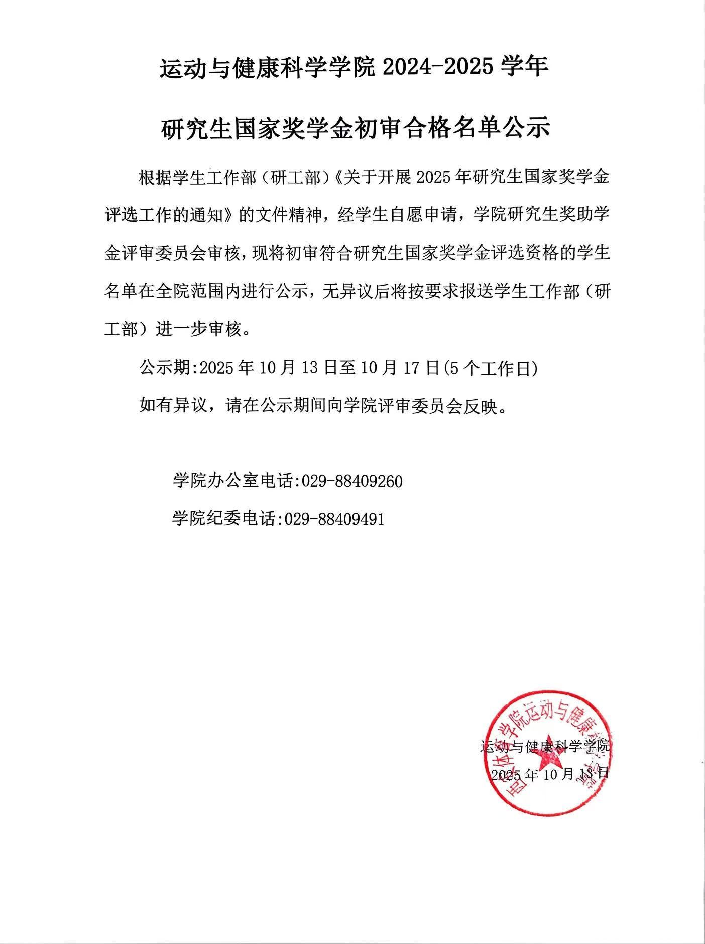 运动与健康科学学院2024-2025学年研究生国家奖学金初审合格名单公示