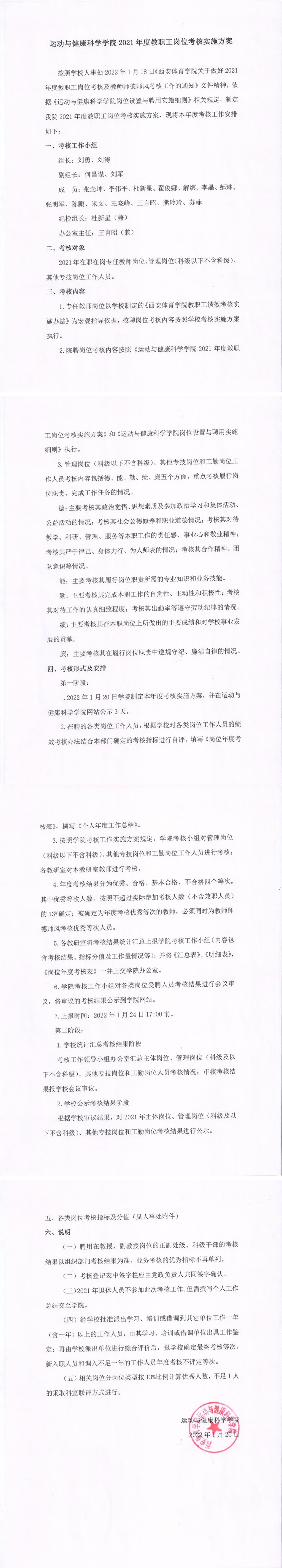 运动与健康科学学院2021年度教职工岗位考核实施方案
