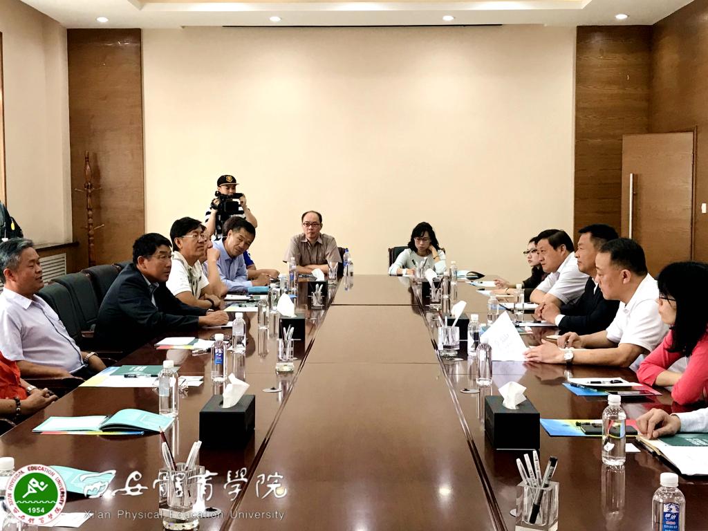 陈彦首先向交流团的到来表示热烈欢迎,之后介绍了学院的基本情况,着重介绍了我院体育专业人才培养、师资力量、科研、竞赛、训练等方面,并希望与此次来自台湾的体育高校行政主管们在会谈后多多沟通,相互汲取经验,帮助我院教学训练工作更上一个台阶。