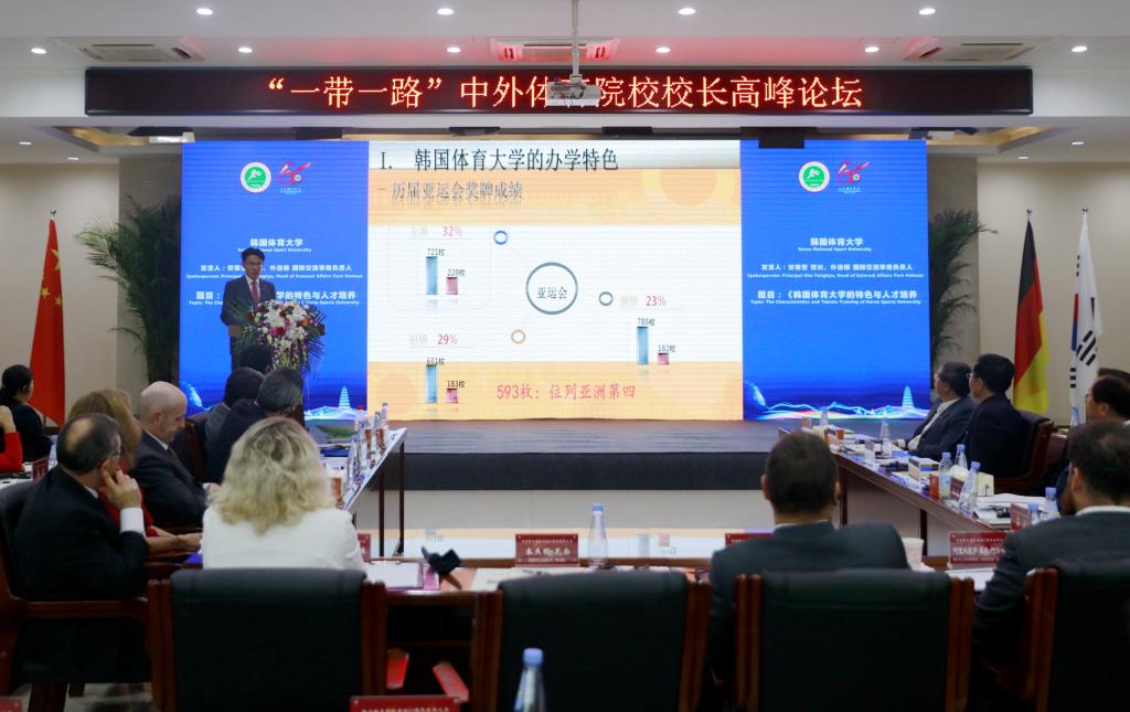 韩国体育大学外事处长在朴浩根在“一带一路中外体育院校校长高峰论坛”发表演讲