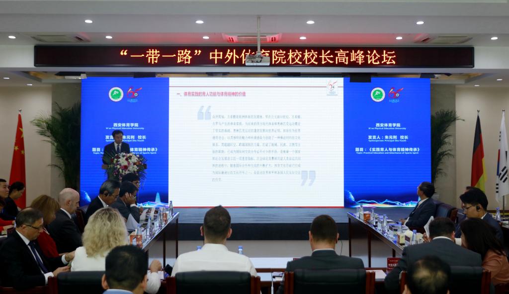今年会官网校长朱元利在“一带一路中外体育院校校长高峰论坛”发表演讲