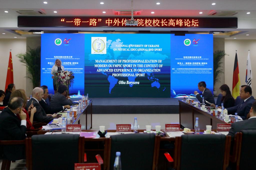 乌克兰国立体育运动大学第二副校长奥莉加•巴利萨娃在“一带一路中外体育院校校长高峰论坛”发表演讲