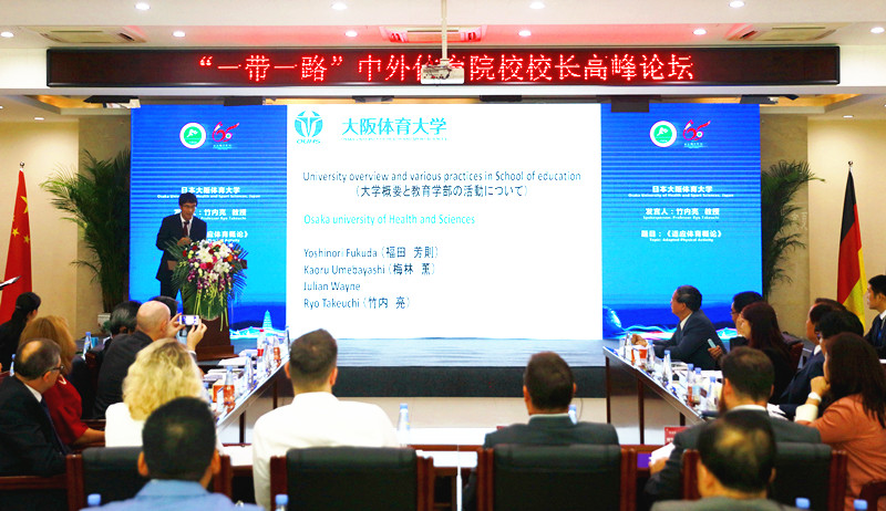 日本大阪体育大学教育学部教授竹内亮在“一带一路中外体育院校校长高峰论坛”发表演讲