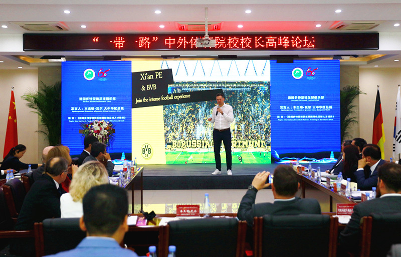 德国多特蒙德足球俱乐部大中华区总裁本杰明•瓦尔在“一带一路中外体育院校校长高峰论坛”发表演讲