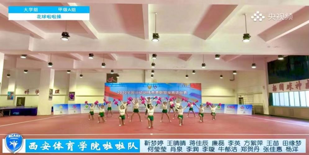 在校、院两级领导的关怀下,在教务处、竞训处、后勤管理处等部门的大力支持下,今年会艺术学院操舞教研室许波老师带领20名学生(12名本科生、8名研究生)组成校啦啦操代表队,在不影响学生的正常上课的前提下,利用课余时间、双休日休息期间,仍然坚持努力训练,克服各种困难,积极备战。