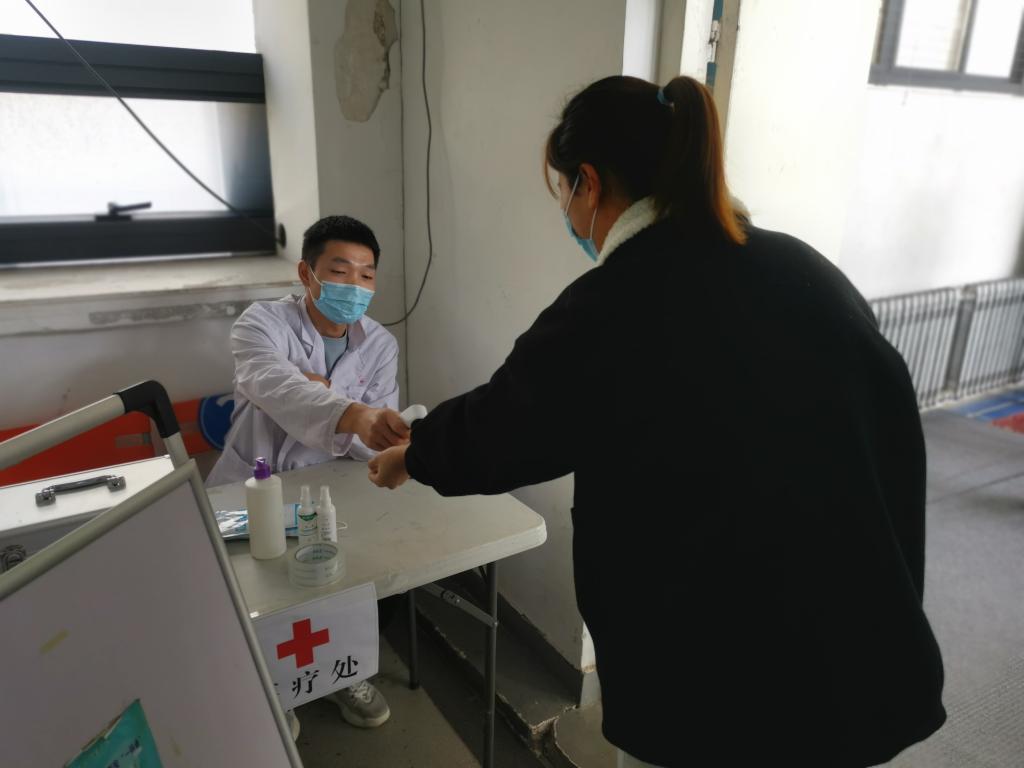 为了做好本次比赛期间的疫情防控工作,保障参赛人员的身体健康安全,在入场前对观赛人员和运动员进行扫码登记,并提醒他们戴好口罩,以保证比赛顺利进行。