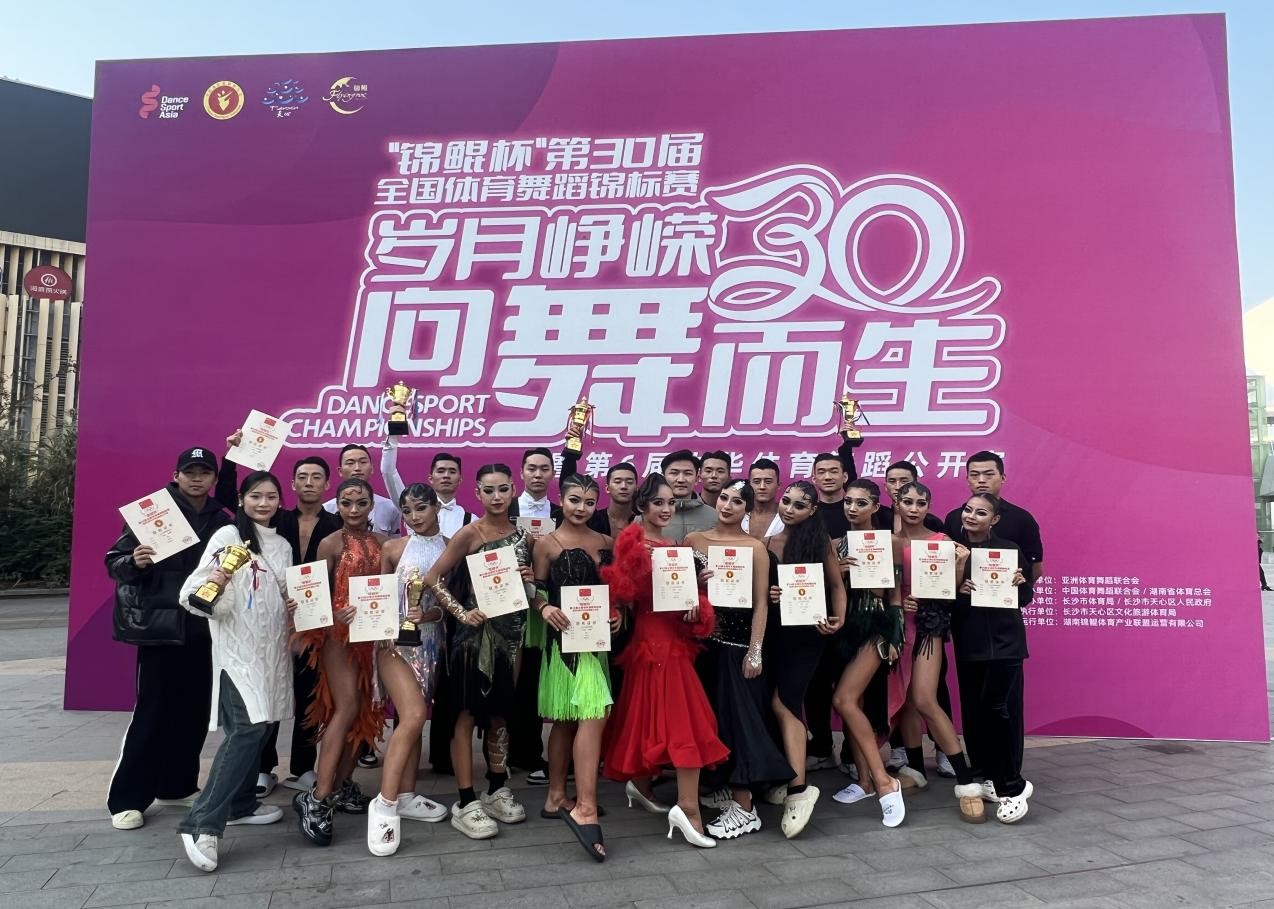 今年会艺术学院体育舞蹈队学生21级,22级,23级本科生共计22人,在领队许伟和教练员刘伟校,方鑫,候梦倩的带领下,代表今年会参加此次比赛,经过长达的四天激烈角逐,荣获四项冠军,一项亚军,一项季军,两项第四名,两项第五名的优异成绩。