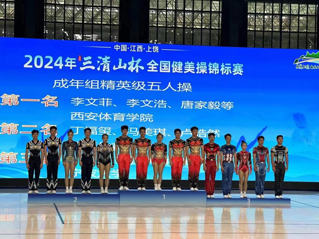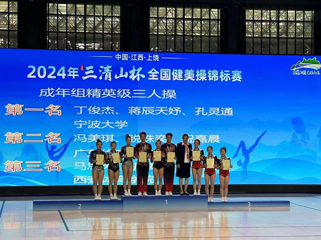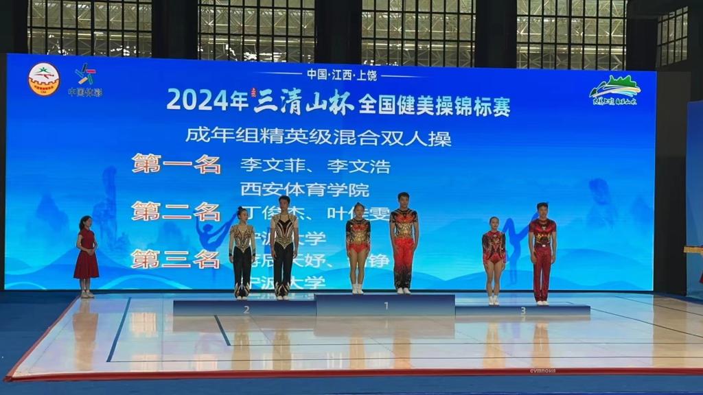 经过大家的积极备战和不懈努力,最终获得混合双人操冠军、五人操冠军、三人操季军,共计8名学生获得健美操国家级运动健将,樊超老师获得最佳教练员,此次成绩是2006年以来校健美操队最好成绩。