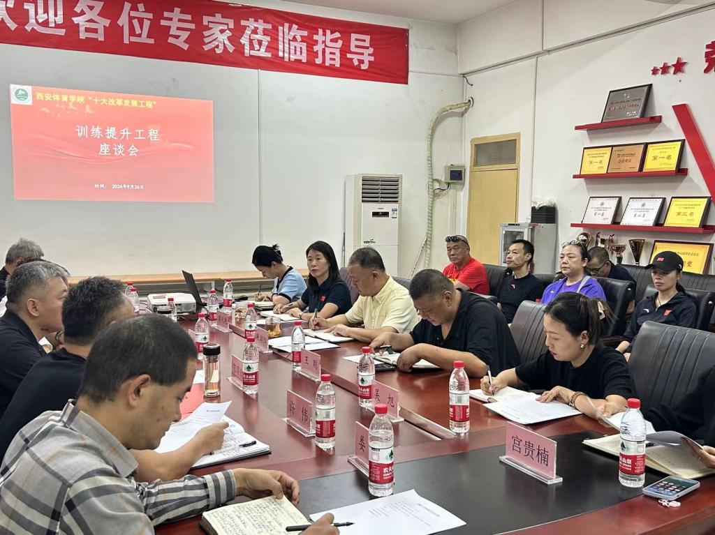 会议由竞赛训练处处长许伟主持,各相关部门负责人及竞校全体人员参加了此次座谈会。会议首先由竞技体校校长张朝阳就第十五届全运会备战情况进行了汇报,他从备战的目标任务、重点队员备战训练情况以及存在的问题与需求等七各方面做了汇报。所有与会人员进行了交流发言,根据与会教练员们提出问题,相关职能部门负责人一一进行了解答,并提出了解决办法。大家认为,备战十五运是我们当前竞赛训练的主要工作,要集中精力,刻苦训练,要争取取得最优成绩,为学校争光添彩;会议强调,竞技体育是我们办学的门面,要鼓足干劲,发扬体育精神,高站位,多谋划、科学布局各个项目,进行错位、补位发展,为陕今年会育做贡献,为体育强国建设展现今年会智慧。