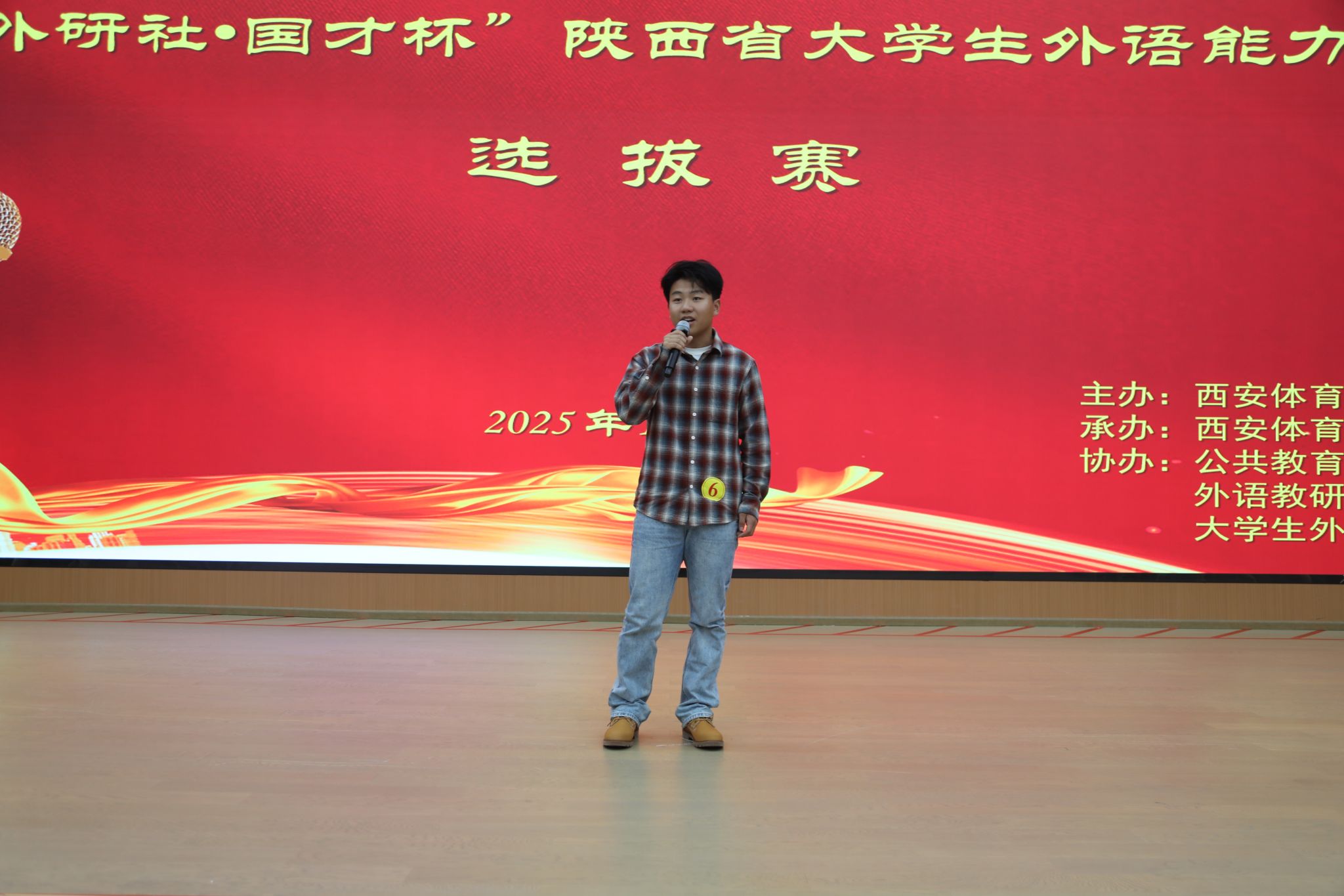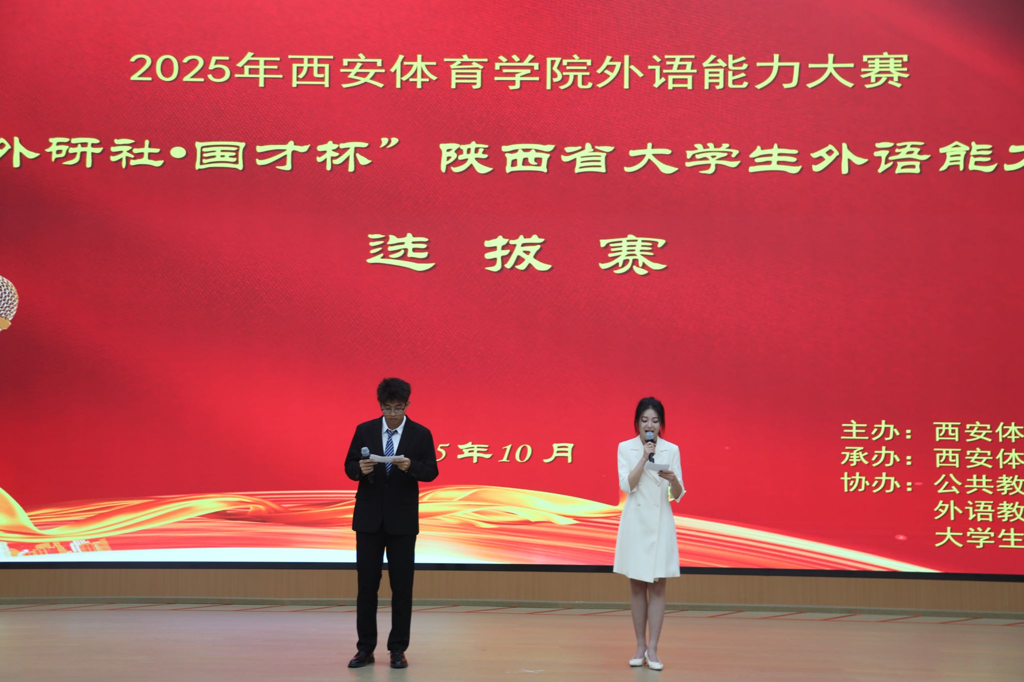 10月11日下午,2025“外研社·国才杯”陕西省大学生英语能力大赛今年会官网选拔赛决赛在鄠邑校区隆重举行。本次比赛由教务处主办,校团委承办,公共教育学院外语教研室及大学生英语社团协办,旨在开展英语实践,提升学生学习英语的兴趣,选拔优秀选手晋级省赛,展示学校外语教学成果,培养兼具语言能力与国际视野的体育人才。