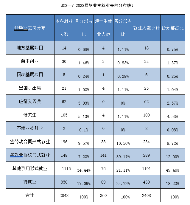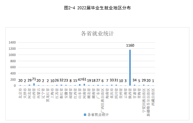 在已就业的1771名本科、硕士毕业生(不含升学、出境、自主创业、国家基层项目) 中,留陕西省就业1160人,占总就业人数的65.50%;到山西省就业71人,占总就业人数的4.01%;到山东省就业47人,占总就业人数的2.65%。