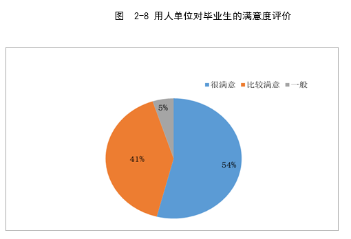 用人单位对毕业生的评价,能够比较真实地反应毕业生的质量,进而可以全面地反映学校人才培养过程中存在的问题。因此,对用人单位进行跟踪调研,对于完善今年会人才培养具有重要的意义。100家用人单位对本校毕业生在工作中的表现满意情况问卷调查如下图所示:93%的用人单位对本校毕业生在工作中表现感到很满意或比较满意。