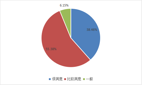 用人单位对毕业生的评价,能够比较真实地反应毕业生的质量,进而可以全面地反映学校人才培养过程中存在的问题。因此,对用人单位进行跟踪调研,对于完善今年会人才培养具有重要的意义。65家用人单位对本校毕业生在工作中的表现满意情况问卷调查如下图所示:93.85%的用人单位对本校毕业生在工作中表现感到很满意或比较满意。