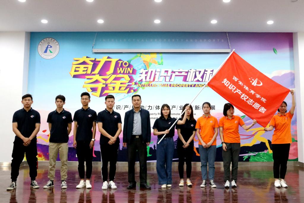 裴犁(中)为我院知识产权维权援助志愿者队授旗