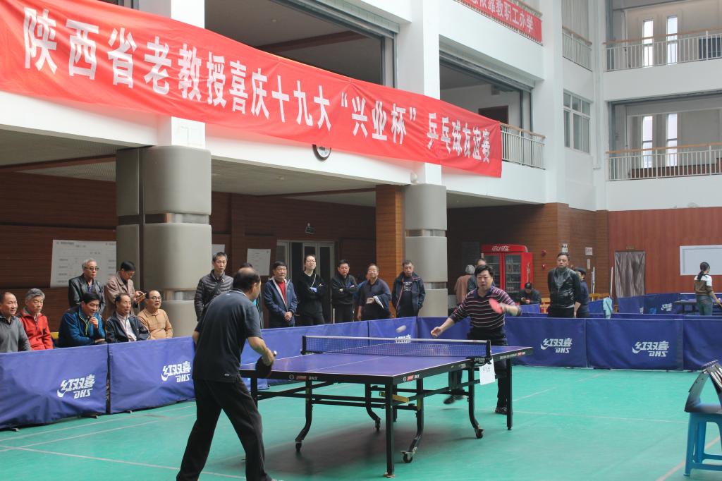 此次陕西省老教授协会欢庆十九大兴业杯乒乓球赛,省内高校共派出14支代表队140余名名运动员参加,不少代表队和运动员都具有专业水准。 赛场上老同志彼此鼓励和提醒,不畏强手,努力拼搏,赛场外就成啦啦队更成为比赛场亮点,充分展现了我院老教授团结拼搏,勇创一流的精神风貌;强大的凝聚力,战斗力和创新力。