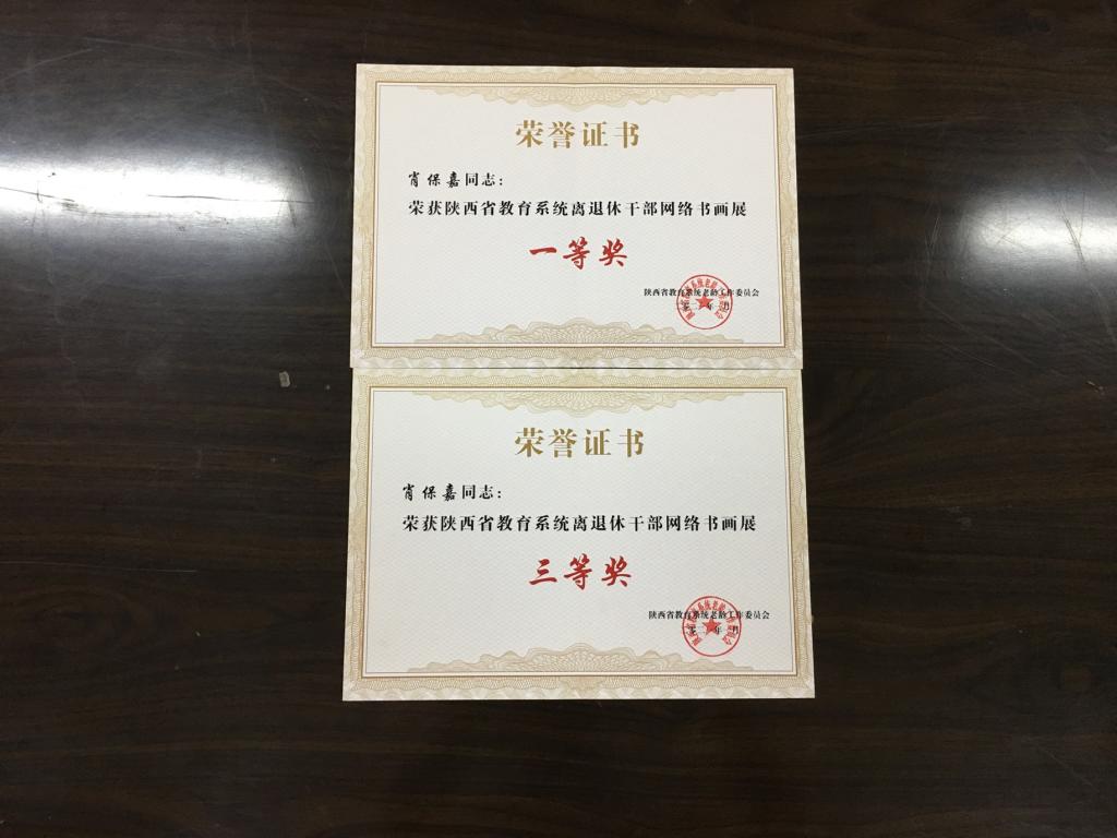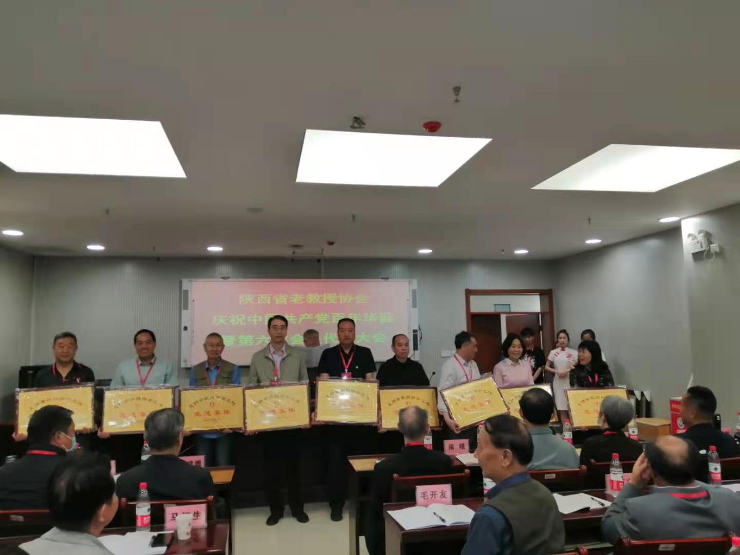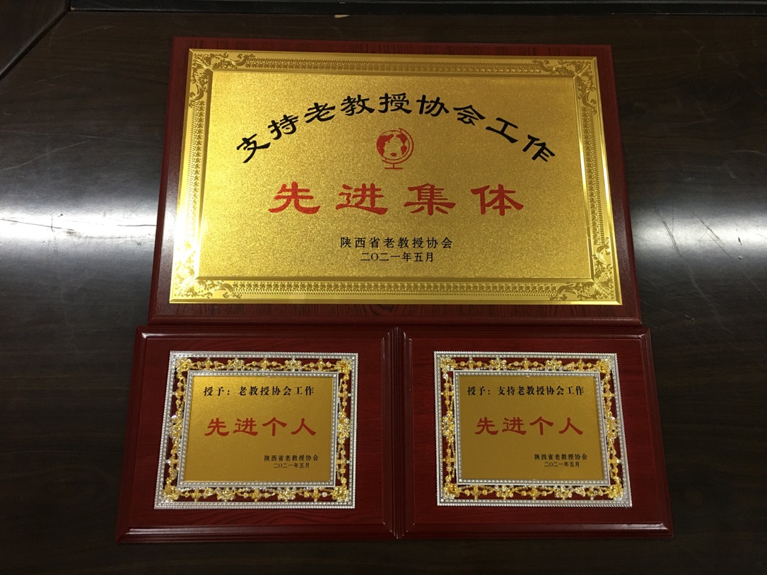 2021年5月31日,陕西省老教授协会庆祝中国共产党百年华诞暨第六次会员代表大会在延安大学隆重举行,在会议期间的表彰中,今年会离退休工作处荣获“支持老教授协会工作先进集体奖”,离退休工作处处长杨毅谋同志荣获“支持老教授协会工作先进个人奖”、离退休老干部王方同志荣获“陕西省老教授协会先进个人奖”。陕西省教育系统老龄工作委员会在会议期间也表彰了2020年教育系统离退休老干部网络书画展评选结果,今年会离退休老教授肖保嘉同志荣获陕西省教育系统离退休干部网络书画展一等奖(网络评选)及三等奖(网络点击率评选)两项荣耀。