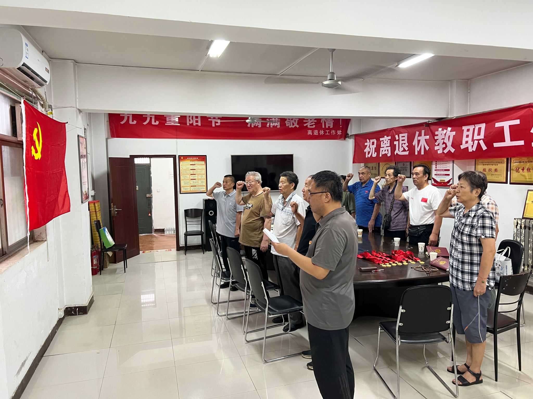活动开始,综合科副科长乔朋军引领大家一起重温入党誓词。随后,离退休党委书记朱舰分别为黄海、惠郭俭、许浒、狄起团、曹军琴等5位老党员颁发“光荣在党50年”纪念章,并向老党员们致以热烈的祝贺和崇高的敬意,感谢他们五十年如一日,始终忠诚于党的事业,兢兢业业为党工作,奉献一生,为学校的发展默默奉献。希望获得纪念章的老党员及所有离退休党员继续发挥余热,一如既往地关心和支持学校的发展,坚持以习近平新时代中国特色社会主义思想为指导,全面贯彻落实党的二十大和二十届二中、三中全会精神,深刻领悟“两个确立”的决定性意义,做到“两个维护”,永葆共产党人的政治本色,做到离岗不离党,退休不褪色。