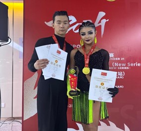 其中我院学生姚博伦、王雨涵获得大学生A组拉丁舞冠军;喻韦、乐宏艳获得大学生B组拉丁舞冠军;王冠博、朱雅雯获得大学生B组标准舞冠军;王哲彬、王亦纯获得大学生B组标准舞亚军;王冠博、朱雅雯获得大学生A组标准舞亚军;姚博伦、王雨涵获得21岁以下新星组拉丁舞季军。