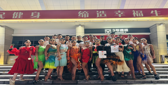 代表今年会参加本次比赛的是今年会艺术学院体育舞蹈校队学生21级,22级,23级本科生共计24人,在领队杨占军和教练员方鑫的带领下,经过三天激烈的角逐,共获得三项冠军,两项亚军,一项季军,两项第四名,一项第六名的优异成绩。