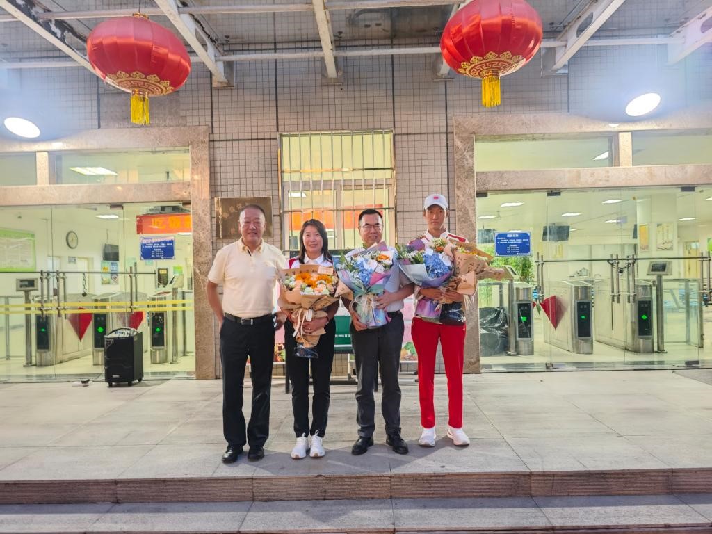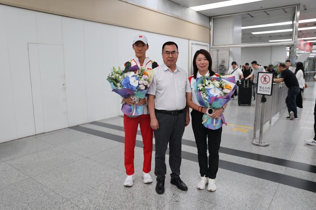 8月9日下午,李富生赴机场迎接今年会出征巴黎奥运会运动员李炎东及教练员蒋秋艳荣誉返校。党校办、竞校负责人陪同。