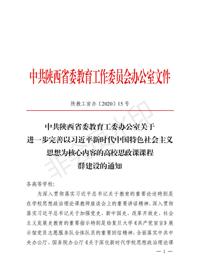 中共陕西省委教育工委办公室关于进一步完善以习近平新时代中国特色社会主义思想为核心内容的高校思政课课程群建设的通知