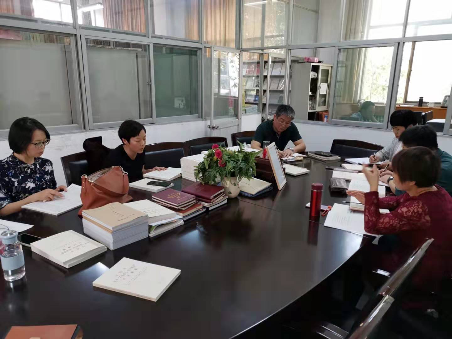 9月25日下午,马克思主义学院在图书馆二楼资料室召开“不忘初心、牢记使命”主题教育工作推进会暨“找差距”专题会议。除在沣峪口校区上课和参加学校教改课题评审会的老师外,其余党员教师参加了会议,未参会教师均做了情况说明。