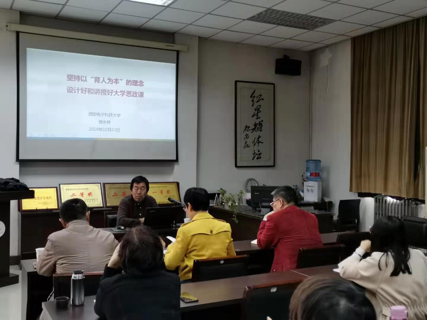 为深入开展“不忘初心,牢记使命”主题教育活动,10月23日下午,马克思主义学院邀请陕西高校教育教学先进典型、西安电子科技大学马克思主义学院党委书记、“老夏说课”创始人、夏永林教授为全体思政课教师作题为《坚持以“育人为本”的理念设计好和讲授好大学思政课》的学术报告。
