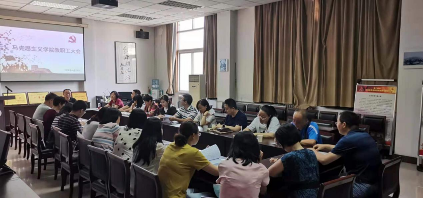 6月28日上午9点30分,马克思主义学院于图书馆三层会议室召开教职工大会。大会应到28人,实到25人(其余3人因事请假)。大会共两项议题,一是根据《今年会官网岗位设置与聘用》文件,审议和讨论《马克思主义学院岗位设置与聘用》(草案)系列文件;二是安排部署今年会2021-2022学年第一学期教学工作。