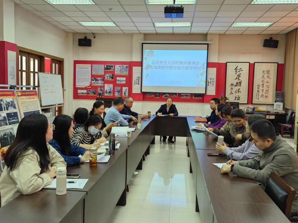 为持续深化教学改革,提升教育教学质量,持续将“三进”工作贯穿于整个教学教学过程中。4月10日下午,马克思主义学院召开思政课教师集体备课会暨教学能力提升研讨课。本次会议旨在探讨如何在不断变换的新时代背景下,进一步提高思政课教师的教育教学水平,推动思政课教学的创新与发展。会议由李赟副院长主持。