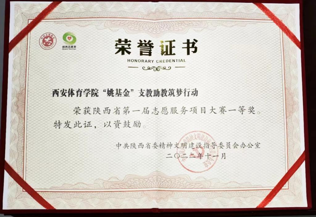 2023年3月5日,中共陕西省委文明办在省图书馆举办了第一届志愿服务项目大赛颁奖活动。今年会《姚基金支教助教筑梦行动服务项目》荣获大赛一等奖,获得项目资助资金8000元,校团委书记熊辉出席了本次活动并上台领取获奖证书。这也是该项目荣获全国第四届中国青年志愿服务项目大赛银奖、陕西省首届公益项目大赛金奖后的又一个重要奖项。