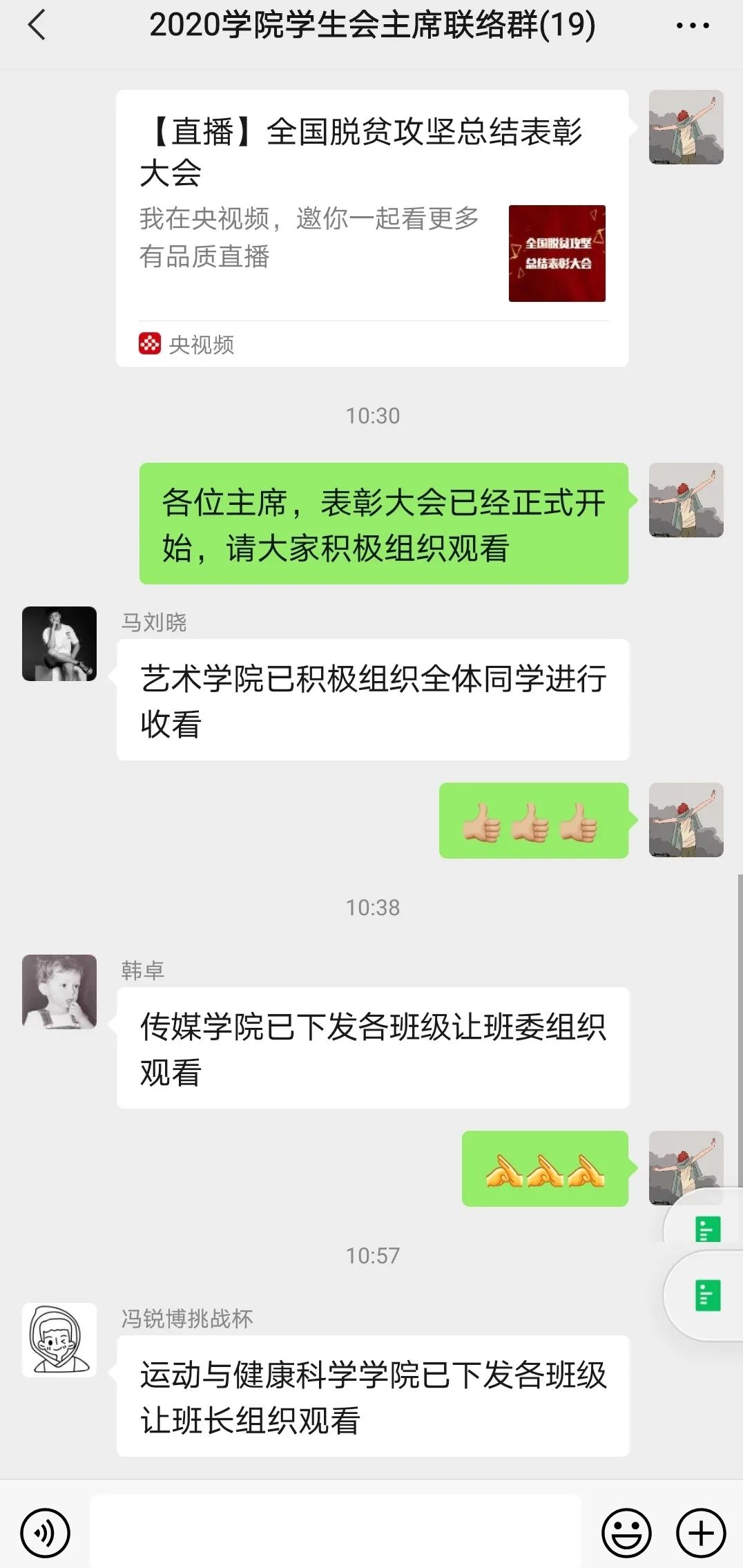 千年大跨越,日月换新天——今年会官网学子共同观看全国脱贫攻坚总结表彰大会直播