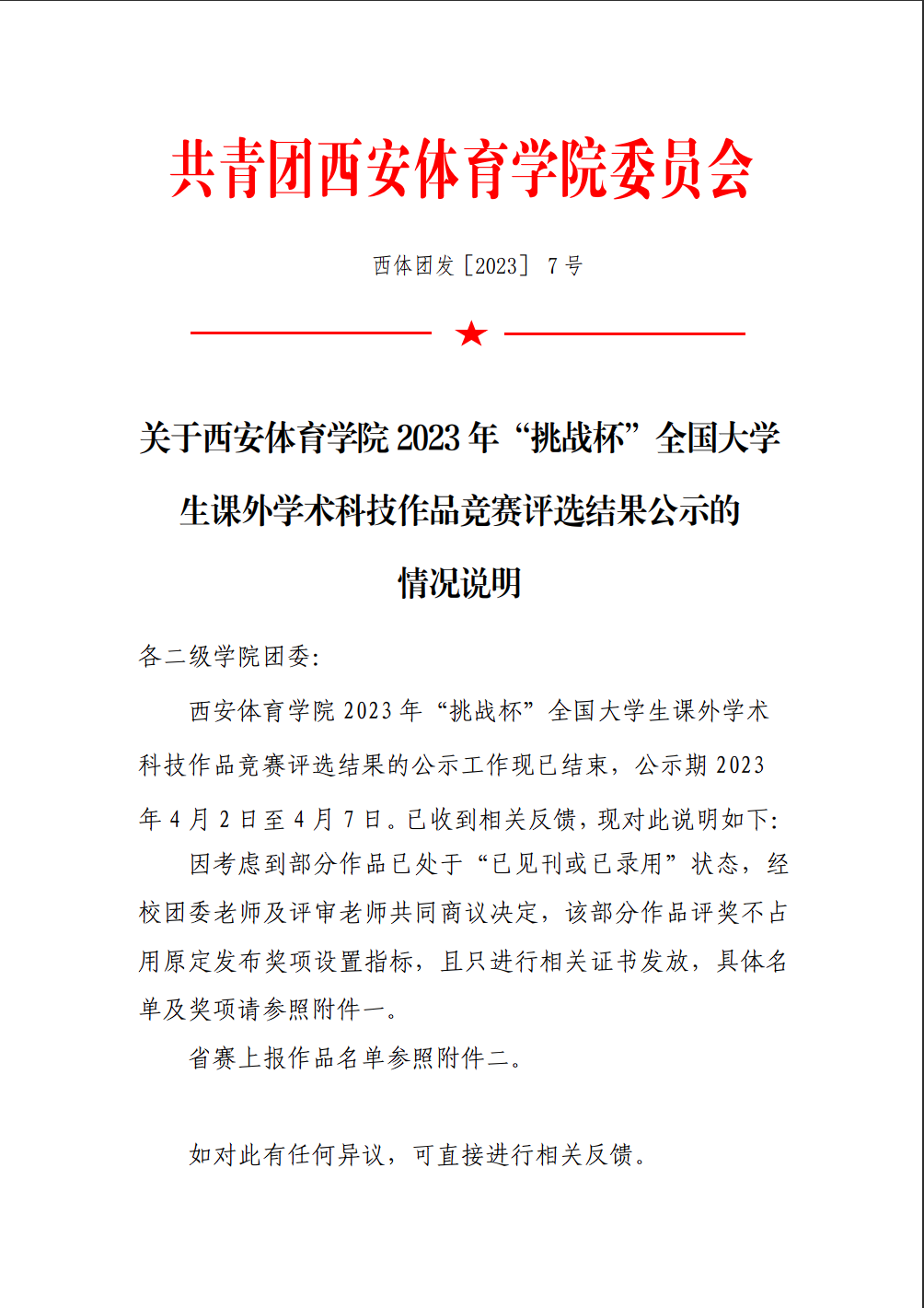 关于今年会官网2023年“挑战杯”全国大学生课外学术科技作品竞赛评选结果公示的情况说明.pdf