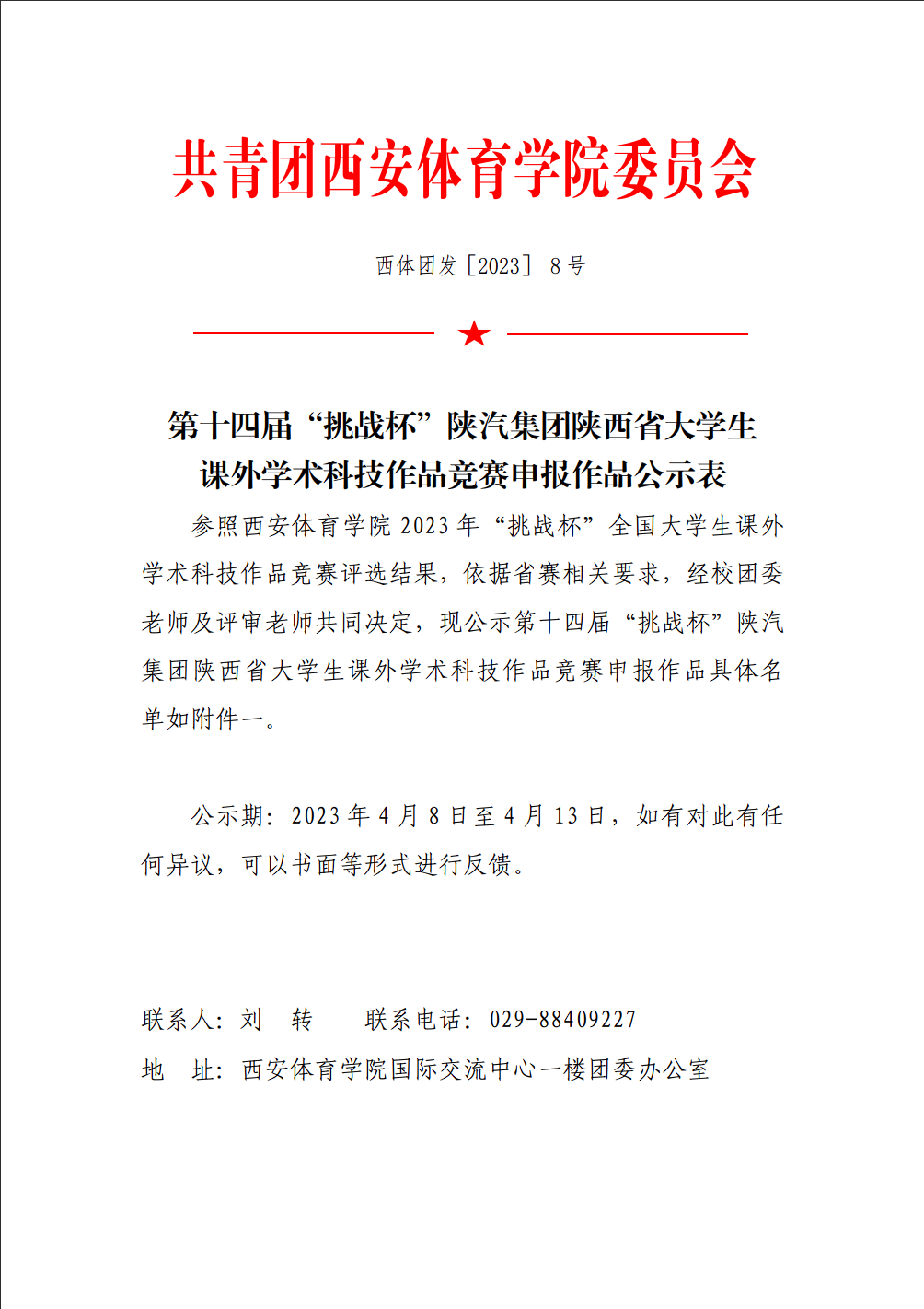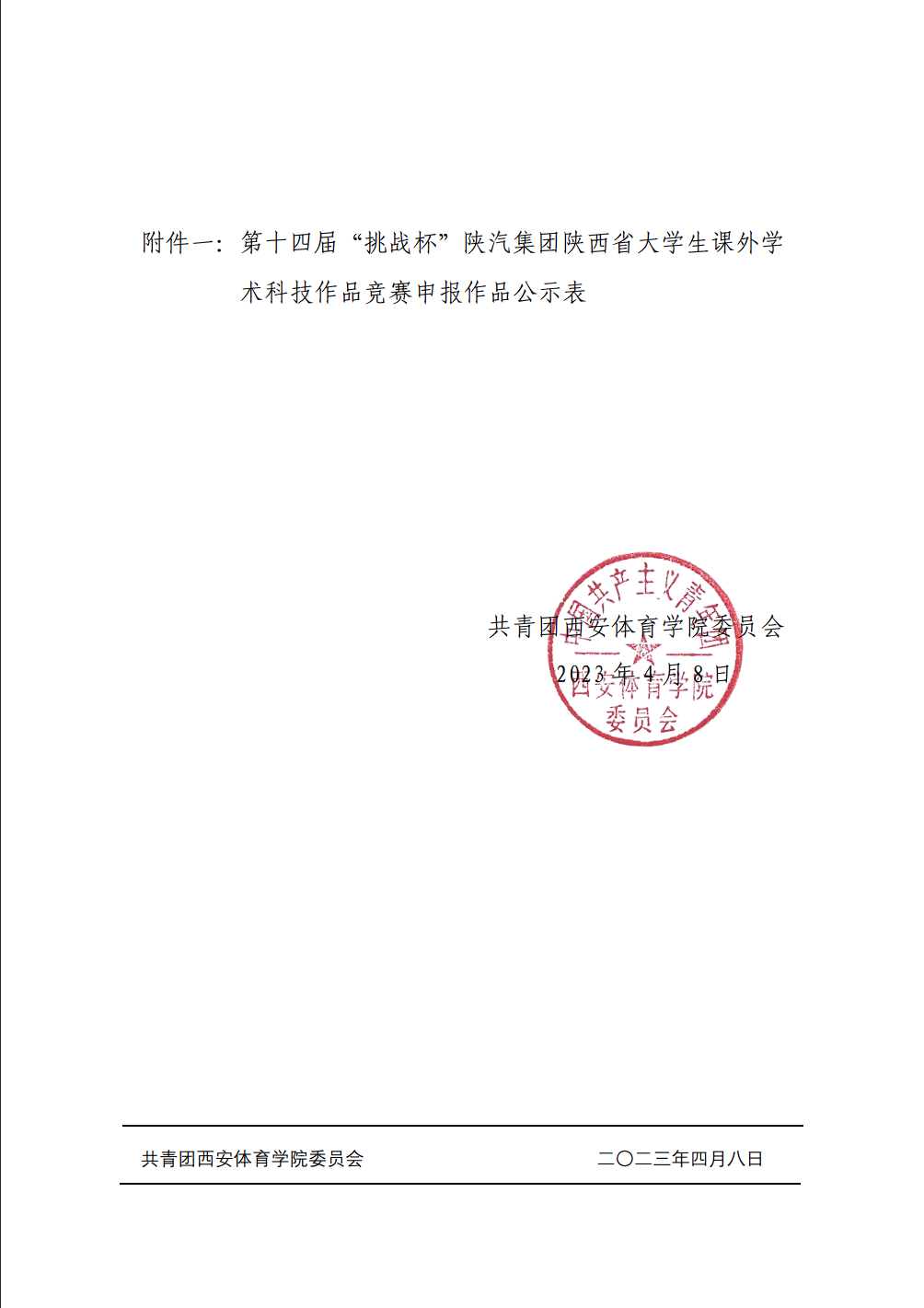 第十四届“挑战杯”陕汽集团陕西省大学生课外学术科技作品竞赛申报作品公示表