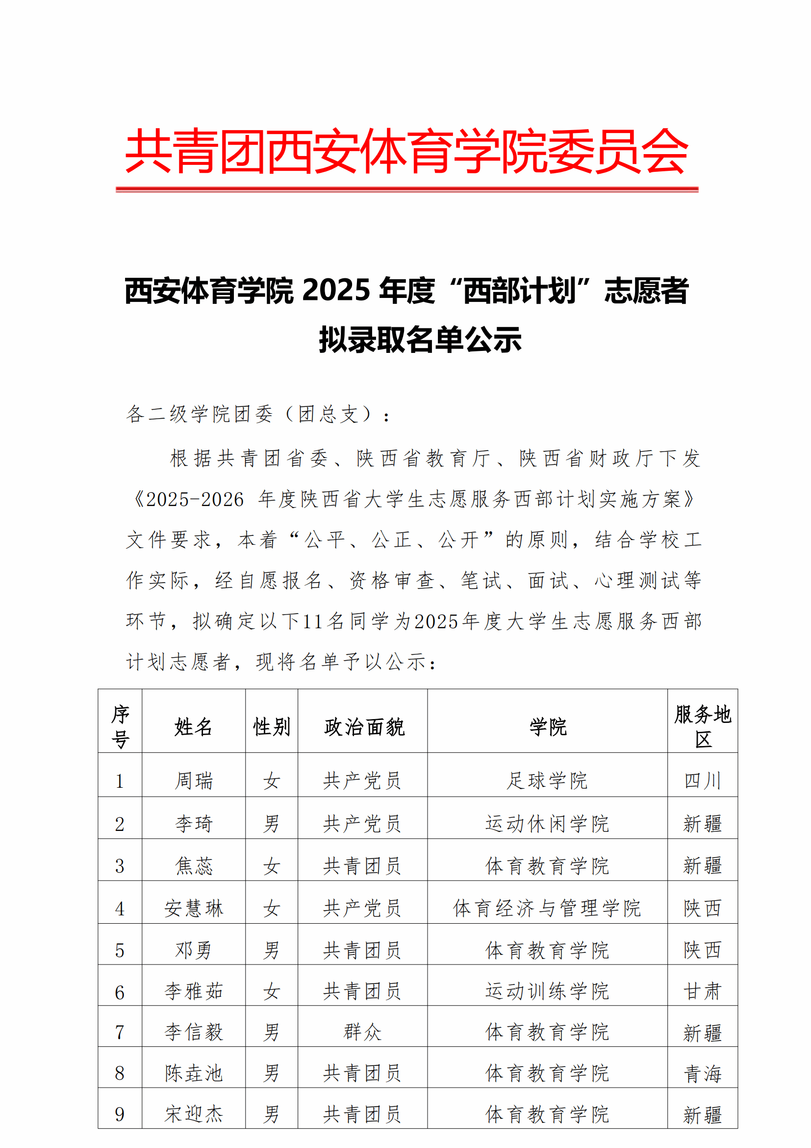 今年会官网2025年度“西部计划”志愿者拟录取名单公示