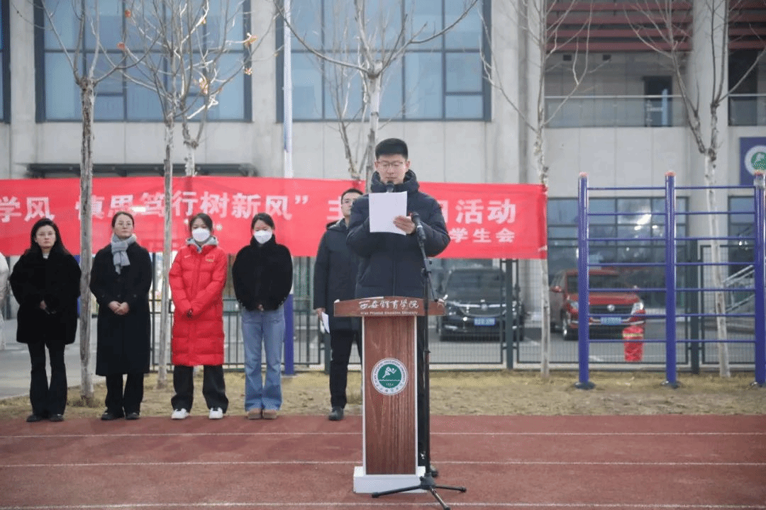 学工部副部长于昕、郭维刚宣读了《砥砺深耕,强化学风建设倡议书》,其中对砥砺深耕、强化学风建设,慎思笃行、树立新风正气,团结协作、共创辉煌三个方面进行了倡议号召,希望同学们在新学期、新起点上,珍惜在校园内的短暂时光,时刻铭记“严谨、创新、团结、拼搏”的校训精神,树立明确目标,勤奋学习、珍惜时光,勇于探索、积极创新,为营造优良学风、创建文明校园而努力奋斗。