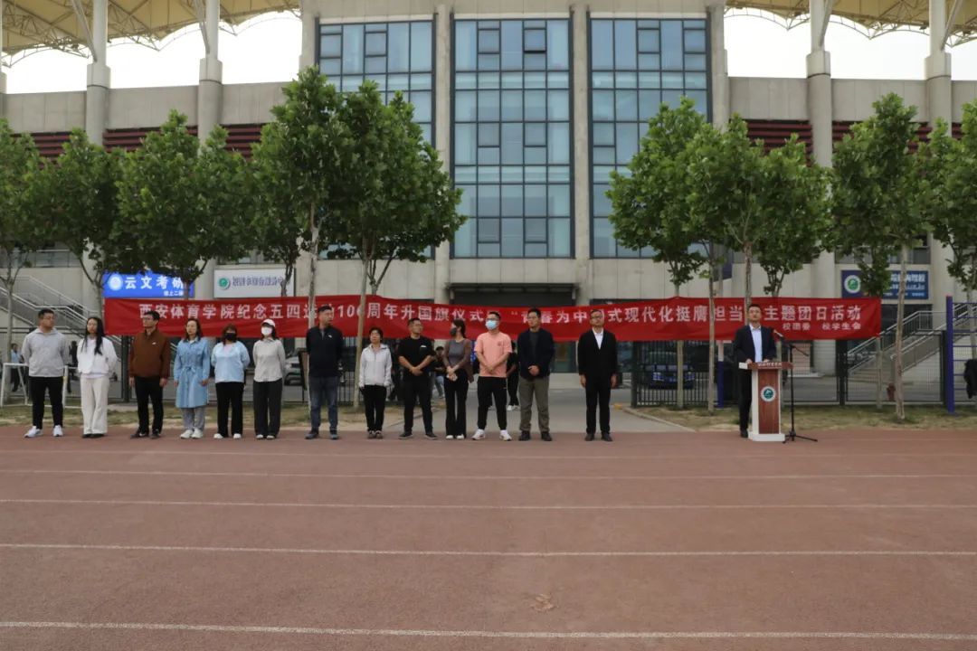 鄠邑校区参加此次升旗仪式的有:学工部部长、校团委书记马国华,学工部副部长郭维刚、各二级学院团委书记、辅导员、学工干部及全体在校学生。