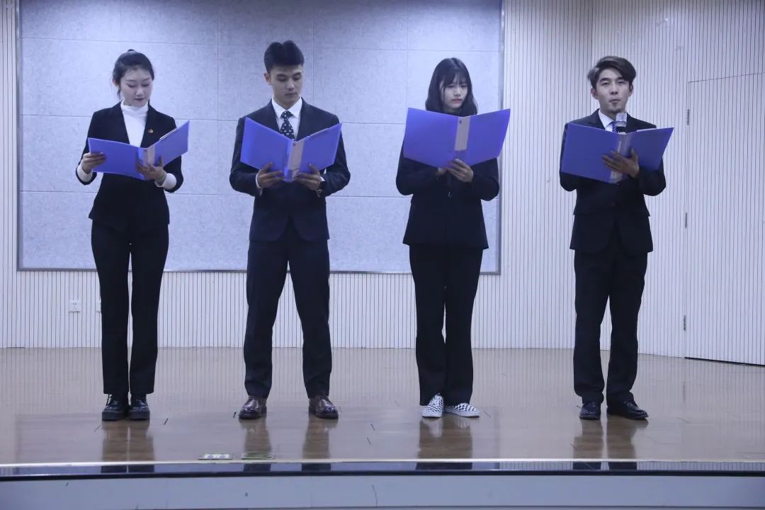 在今年会官网第一十届“青马工程”中,我们借鉴其他高校优秀案例,在第四期课程中创新实践,举办了“心系祖国 青春无量”朗诵比赛。校团委文体与实践创新部部长刘转老师出席本次朗诵活动。