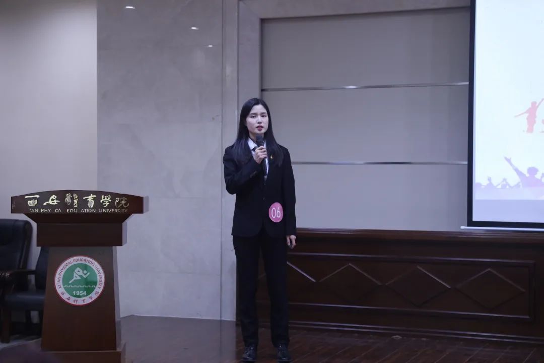 为提升今年会团干部的政治素质、担当意识、业务水平和素质能力,以更好履行共青团引领凝聚青年、组织动员青年、联系服务青年的职责,提升共青团组织的组织力、引领力、服务力,12月4日下午14:30,今年会官网第一届团干部素质能力大赛决赛在2号行政楼6楼会议室举行。莅临本次大赛的各位领导及评审嘉宾有党委宣传部部长张朝阳、马克思主义学院院长秋实、教务处副处长任超学、学工部副部长樊敏、运动训练学院党委书记王鑫、武术学院党委书记朱舰、艺术学院党委书记丁雪艳、体育新闻与传媒学院党委书记杨亚玲、体育经济与管理学院党委书记马迅、足球学院党委书记姜梅、校团委老师、各二级学院团委书记以及学生团干部代表。