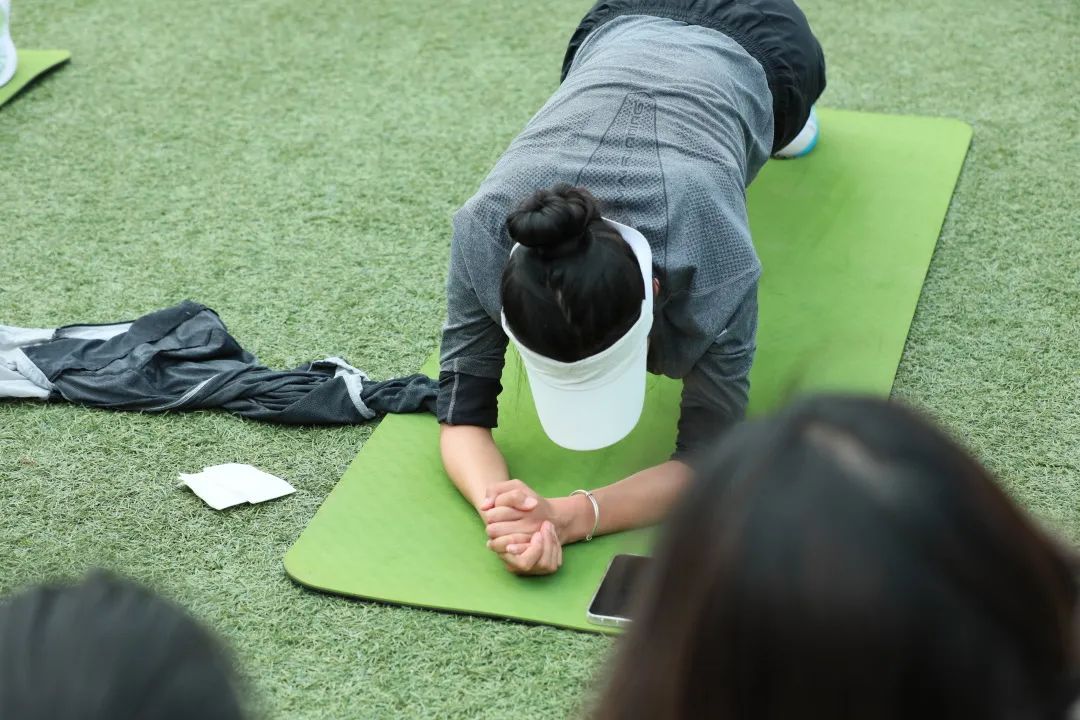 平板支撑是一种类似于俯卧撑的肌肉训练方法,要求参赛人员双肘弯曲支撑在地面,肩膀和肘关节垂直于地面,脚尖触地,保持身体离开地面,身体中心不能接触地面,以坚持的最终时间来记录成绩。在比赛过程中,同学们专心致志热烈比拼,全身心地投入比赛中。规范的动作、持久的耐力,同学们热情的加油助威声,燃爆了比赛现场。
