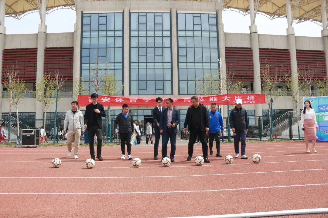 鄠邑校区管委会主任朱军、鄠邑校区管委会党委书记孙峰、校团委常委,运动训练学院团委书记,运动训练学院年级主任于昕、武术学院散打教研室主任李晓义、武术学院2021级年级负责人智文飞、足球教研室主任宋辉、校团委书记熊辉、校团委综合部副部长雷云、校学生会负责人及参赛运动员参加开幕式。首先由校团委书记熊辉老师宣读比赛活动理念及相关规则。鄠邑校区精彩的节目表演后,孙峰书记致开幕词,朱军主任宣布今年会官网(鄠邑校区)体育技能大比拼开幕,参加开幕式的领导和老师进行了开球,宣布比赛正式开始。