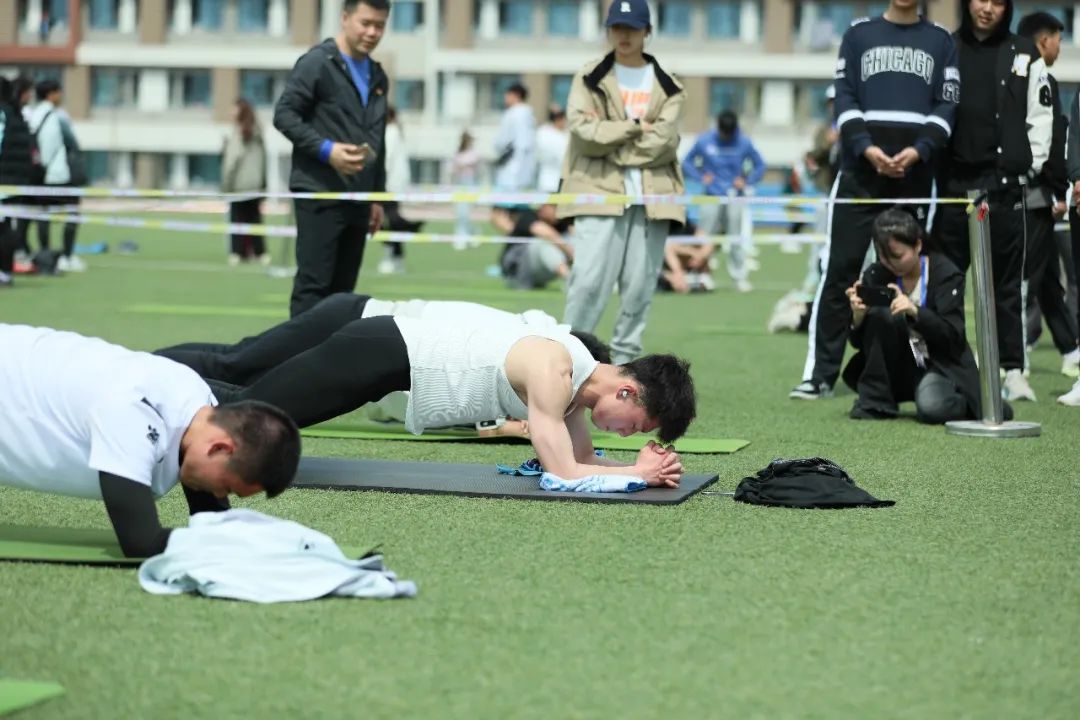 怀着无比激动的心情,同学们陆续进场,操场顿时沸腾起来。每分每秒都扣人心弦,体力的比拼,意志力的交锋,被同学们演绎得淋漓尽致。参加俯卧撑大赛的同学们拼尽全力,处处传递着我运动我快乐的精神。