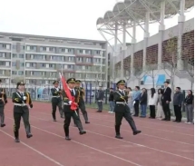 伴随着铿锵有力的口号,振奋人心的歌声。在全体师生的注目礼下,英姿飒爽的国旗护卫队队员们护送鲜艳的五星红旗入场,行礼完毕。