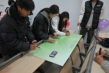 每位同学获得了一张菱形红纸,被鼓励大胆创意,自由发挥,将心中的字写在纸上。